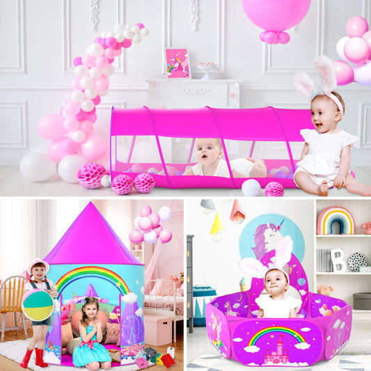 5pc Kids Play Tent for Toddler with 1 Baby Ball Pits, 2 Baby Crawl Tunnels, 2 Pop Up Tents