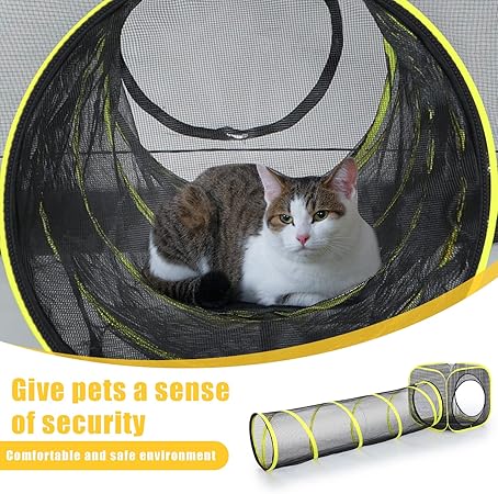 - Foldable & Lightweight: The portable mesh design is easy to fold and install for travel and storage. The pet mesh tent requires assembly, whereas the pet tunnel and pet playhouse are pop-up designs that are ready to use the moment they are opened
