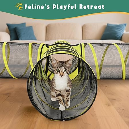 - 4-Way Pet Tunnel: Four cat mesh tunnel, and central play cube. The parts can be used together or separately. Suitable for cats, rabbits guinea pigs, ferrets, and other small animals