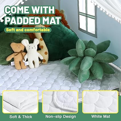 - Soft Mat: This kids play tent comes with a mat that is designed to be non-slip. The mat ensures safer playtime, more comfortable reading, and napping inside the tent, allowing children to enjoy more fun freely. Also is suitable to be a first birthday gift for girls